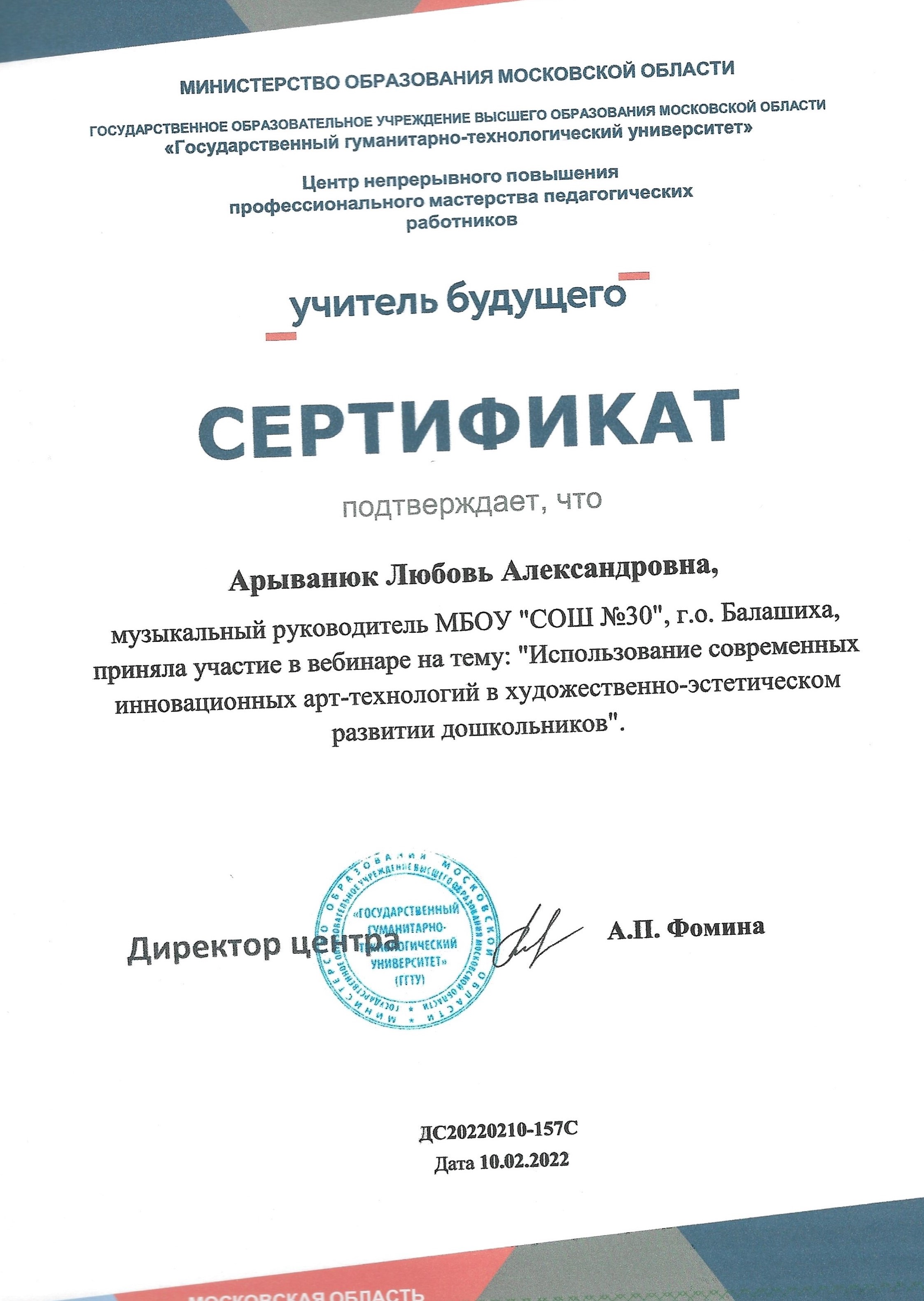 Участник вебинара на тему" Использование современных ииновационных арт-технологий в художественно-эстетичесском развитии дошкольников"